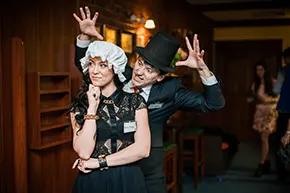 Полноценные костюмы вызывают восторг игроков! Мгновенное перевоплощение в образы и погружение в сюжет гарантированы. А после игры будет время для спокойной групповой и индивидуальной фотосессии в костюмах.