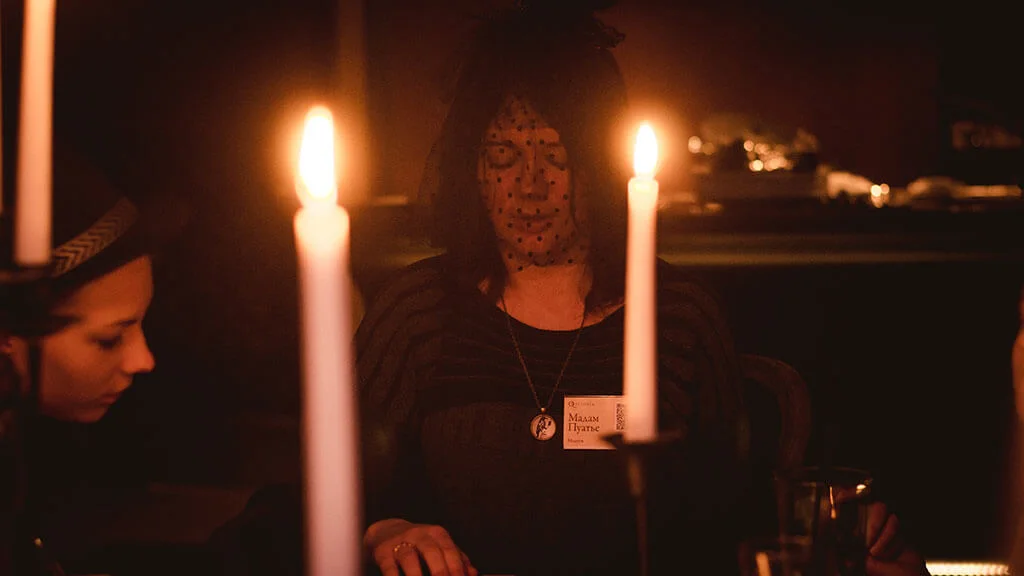 Все подозреваемые, детектив Майлз, а также некоторые заинтересованные лица приглашены на спиритический сеанс в салон Пуатье...
